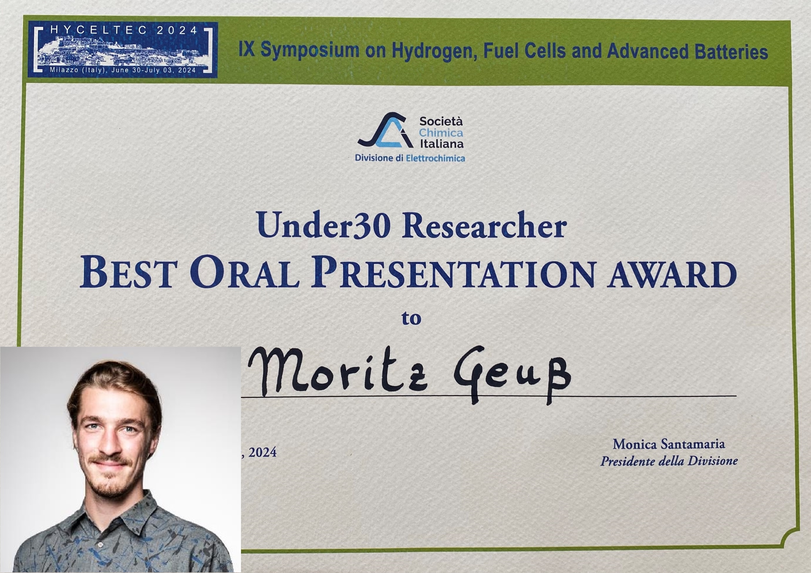 The Best Oral Presentation Award at the HYCELTEC2024 conference won by Moritz Geuß!