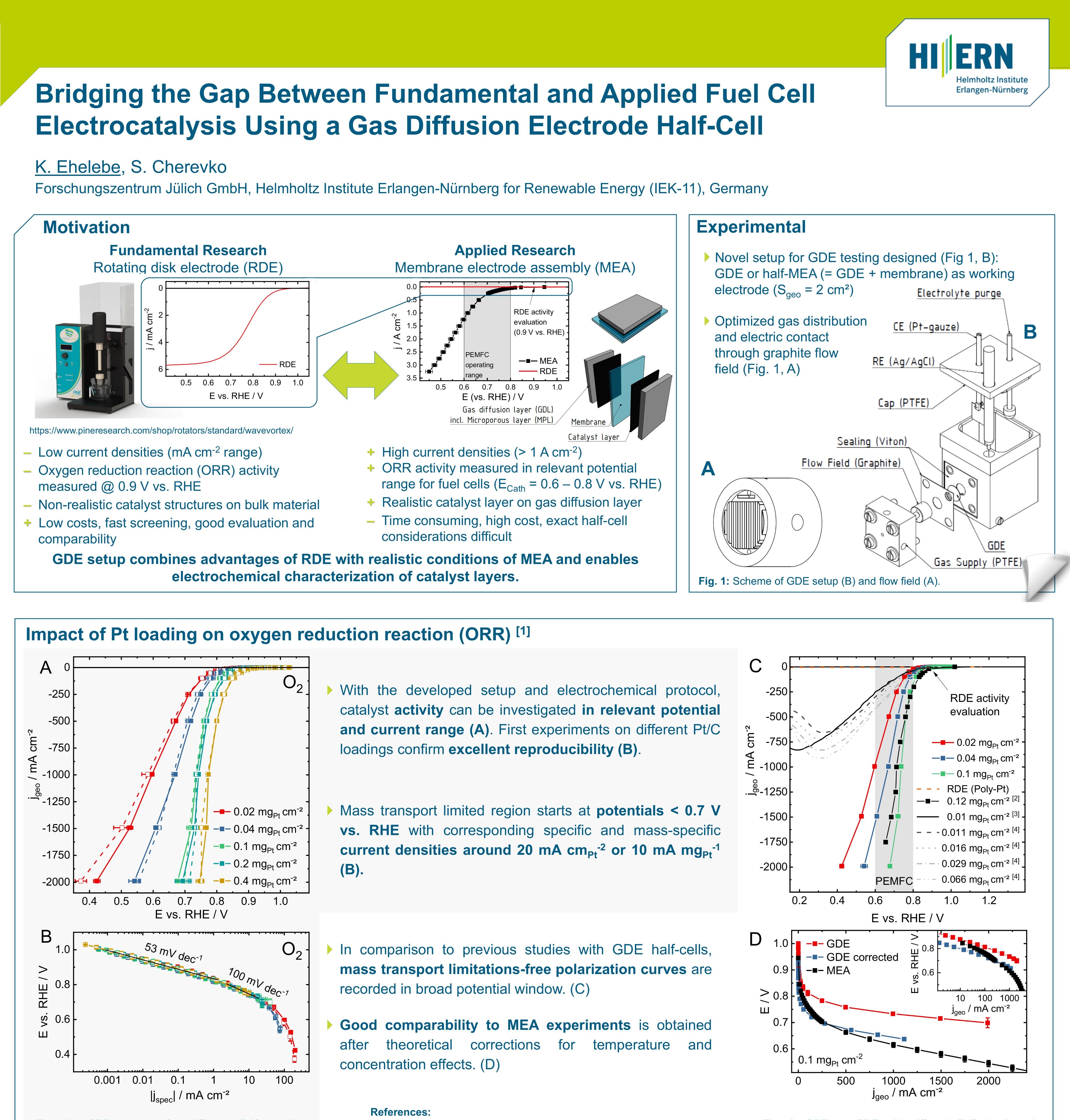 Our new work on Pt dissolution in realistic fuel cell catalyst layers was published in Angewandte Chemie. In this current work we present the first experimental approach to measure Pt dissolution in gas diffusion electrodes (GDE). Therefore we coupled our GDE half-cell setup with inductively coupled plasma mass spectrometry (ICPMS). With this, Pt dissolution in realistic catalyst layers and the transport of dissolved Pt species through Nafion membranes are evaluated directly.