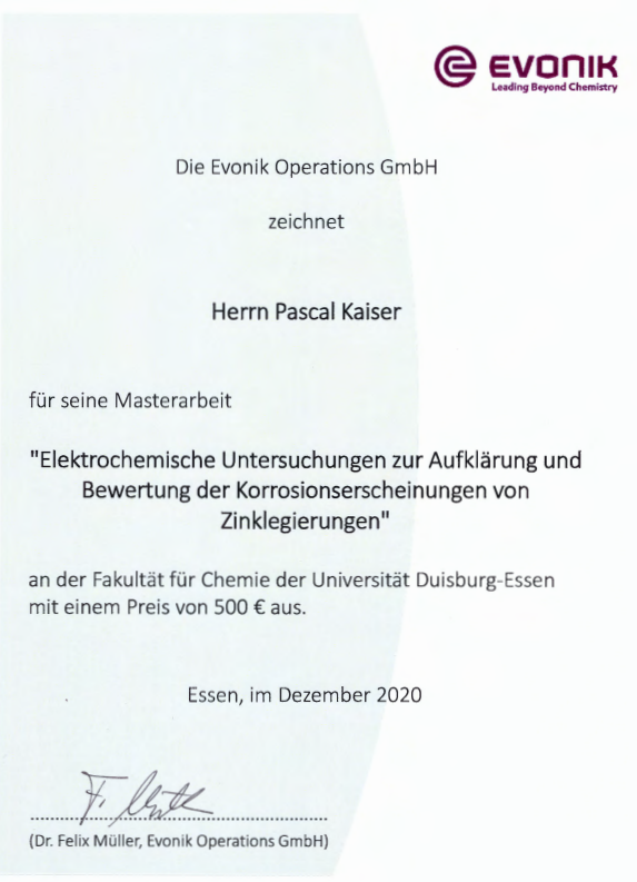 Pascal Kaiser, who received his Master of Chemistry from the University of Duisburg-Essen (Germany), will support the interdisciplinary research project to investigate catalyst layers by using our gas diffusion electrode (GDE) setup. The focus of his research will be on advanced catalyst support materials. Thereby, the structure-performance relationship will be investigated to gain deeper insights into mass transport phenomena in catalyst layers for low Pt metal PEMFC.